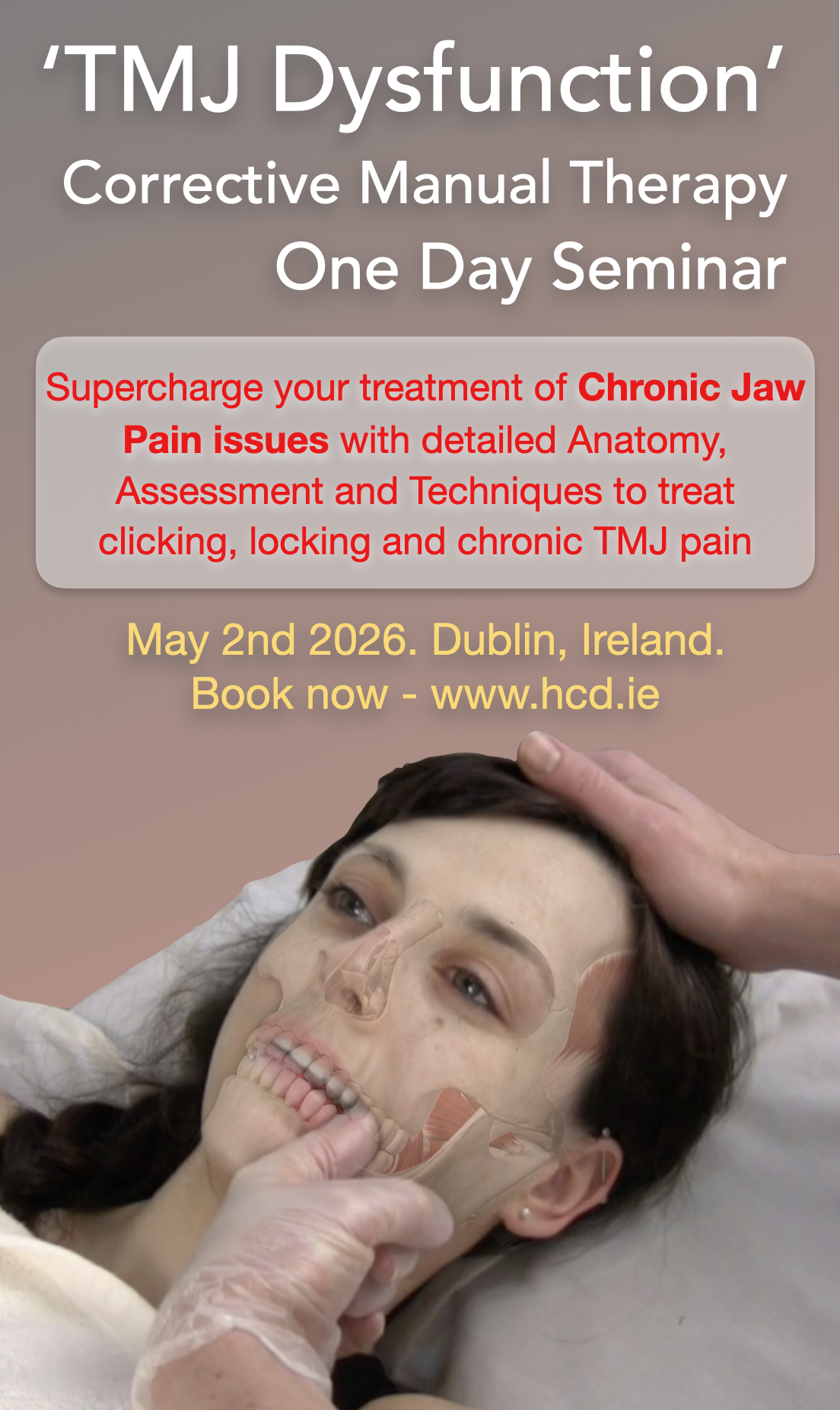 On our Corrective Manual Therapy ‘TMJ Dysfunction’ One day Seminar you will learn practical and effective approaches for safely assessing and treating chronic Temporomandibular Joint Dysfunctions.